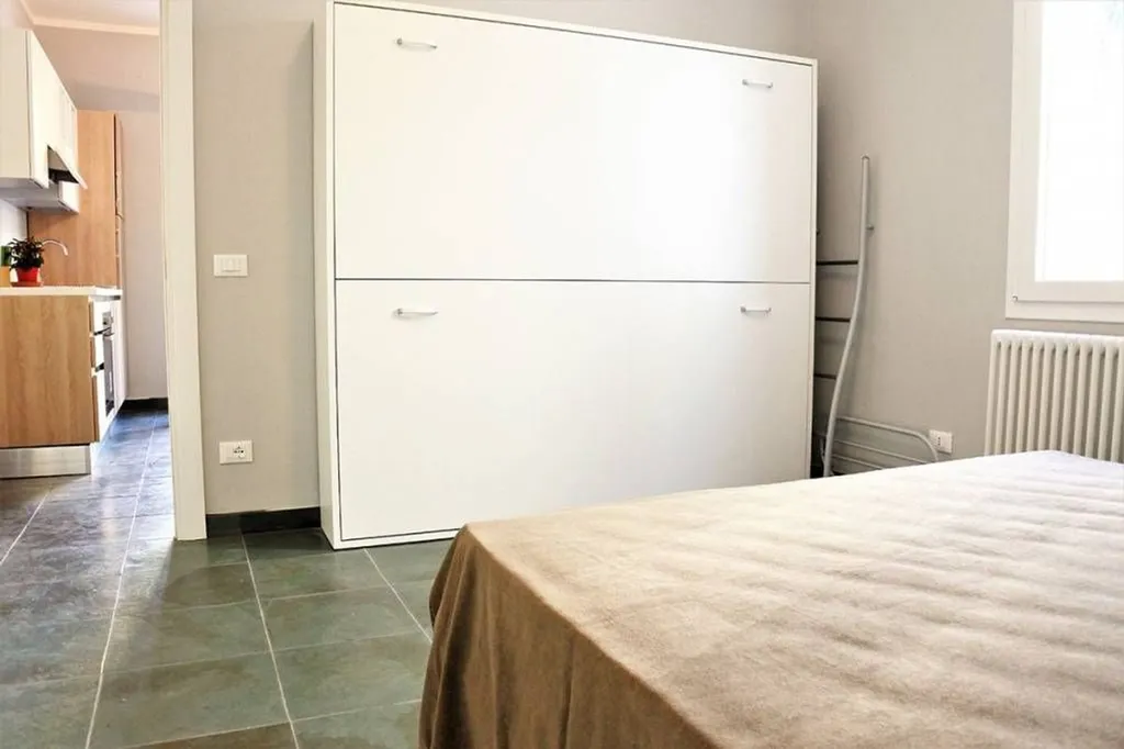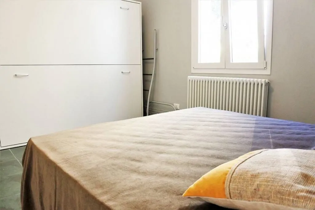 Rif. BRB Traversa Viale Milazzo 24 - SX - Affittiamo a Cervia appartamento al piano terra in villetta ristrutturata nel 2018, zona tranquilla vicino al centro storico ed a circa 600 metri dal mare. Composto da soggiorno angolo cottura, disimpegno, bagno con box doccia e camera matrimoniale con letto a castello a scomparsa. Nel giardinetto comune esterno è possibile posteggiare un'auto e saranno forniti tavolino e sedie per poter pranzarecenare all'esterno. Dotato di tv, lavastoviglie ed aria condizionata. Lavatrice, assegnata all'appartamento, disponibile in una nicchia esterna dietro l'abitazione. Arredamento completamente rinnovato. Affitto estivo. Disponibile a Settembre e Ottobre. No affitto annuale.