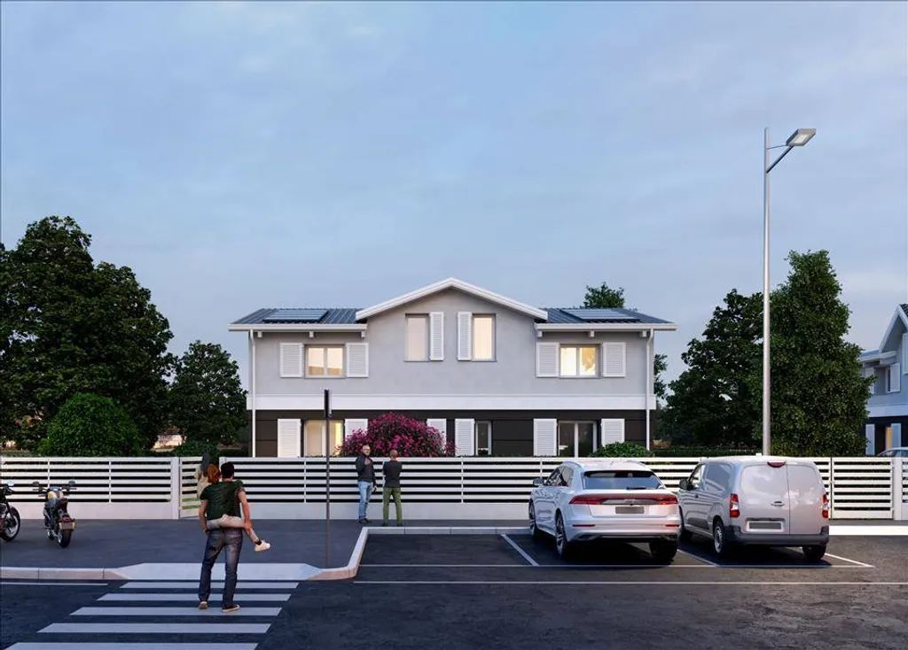 Ogni villetta avrà il suo ingresso indipendente ed il suo giardino. L'unità immobiliare sono disposte su due livelli, al piano terra ingresso su soggiorno con angolo cottura con accesso al giardino ed un comodo ripostiglio, salendo al primo piano due o tre camere ed un bagno finestrato. Completa la proprietà un posto auto. La palazzina verrà costruita con rifiniture moderne ed in classe energetica A/3. E' possibile effettuare personalizzazioni su carta.
